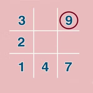 ၅, ၆, နဲ့ ၈ မရှိတဲ့အခါ ဂဏန်း ၉ ဟာ တစ်ကျွန်းစံ ဖြစ်ပါတယ်။ ဒါက အောက်ပါအတိုင်း ပေါ်လာနိုင်ပါတယ်-