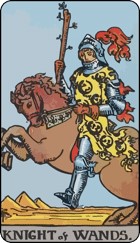 Knight of Wands ကတ်က သင့်ရဲ့ စိတ်အားထက်သန်ပြီး စွန့်စားလိုတဲ့စိတ်ဓာတ်ကို ကိုယ်စားပြုပါတယ်။ သင်က အသစ်အဆန်းနဲ့ စိတ်လှုပ်ရှားစရာတွေကို အလွယ်တကူ စိတ်ဝင်စားတတ်ပေမယ့် အရာရာက ရိုးအီသွားတဲ့အခါမှာတော့ စိတ်ဝင်စားမှု ပျောက်သွားတတ်ပါတယ်။